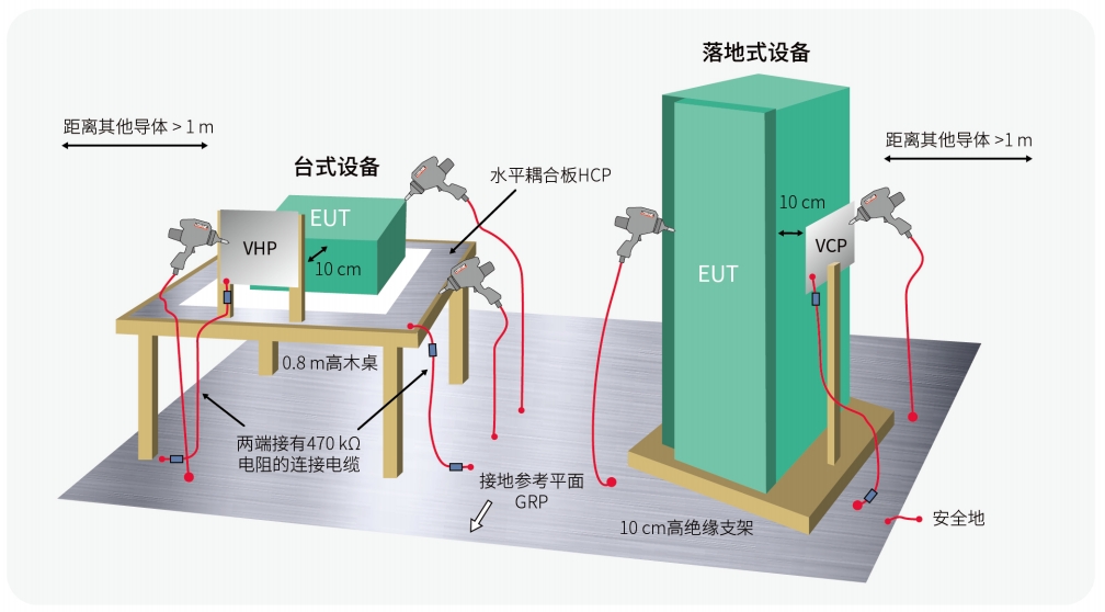 静电放电抗扰度试验主要检查人或物体在接触设备时所引起的放电(直接放电),以及人或物体对设备邻近物体的放电(间接放电)时对设备工作造成的影响。