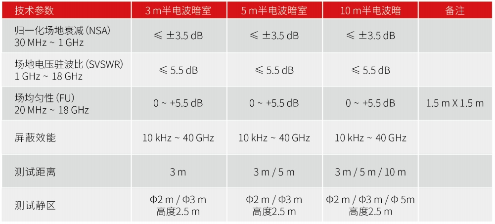 传统方形设计和高性能的解决方案完全满足3 m/5 m/10 m测试距离,静区最大Ф5 m。